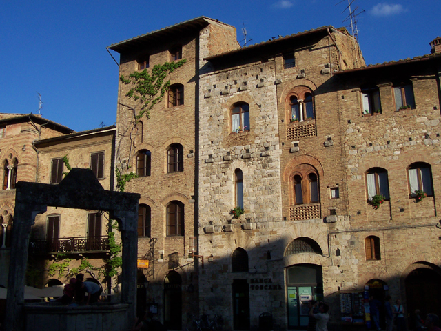 這兒跟西恩納比較起來,又更闃靜了些,曲折巷弄、磨損石板路、隱沒屋舍之後的攀升石階,同一風格但又各自變化的拱門、拱窗、拱廊,透著濃濃的舊時代氣味。