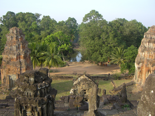 其中之一的羅蕾寺,是四個呈田字型排列的塔樓。原先該是個立於人工湖之上的島廟,以六個塔樓雙列呈現。只是建造到一半,國王決定遷都至吳哥地區,因此羅蕾寺只能以未完成的樣貌,度過歷史風霜。