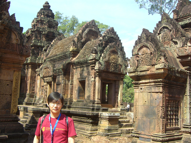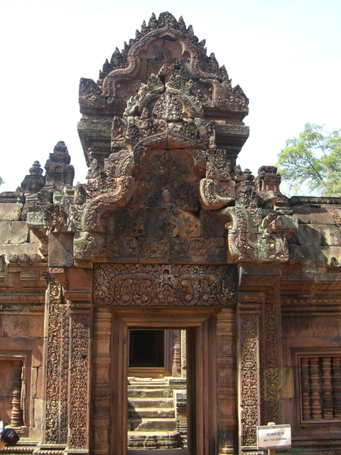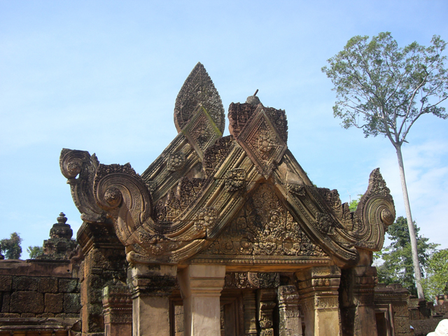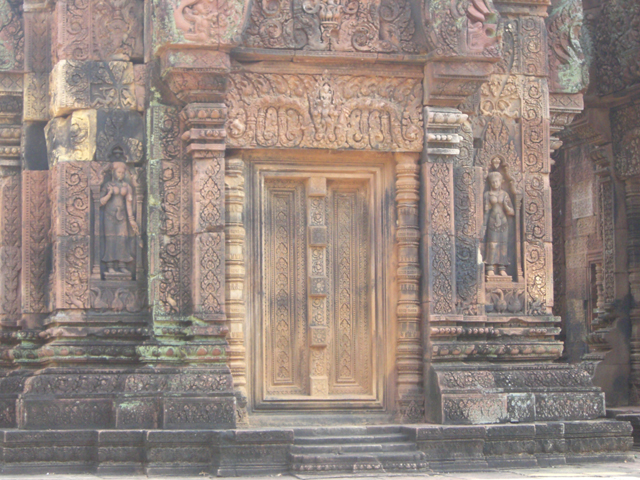 女皇宮若以音譯,也喚作斑蒂絲蕾。他的建築與雕飾細緻華美,所用石材又摻了點淡淡粉色,帶有后妃住殿的柔媚丰姿,故民間以女皇宮稱之。