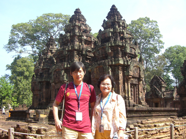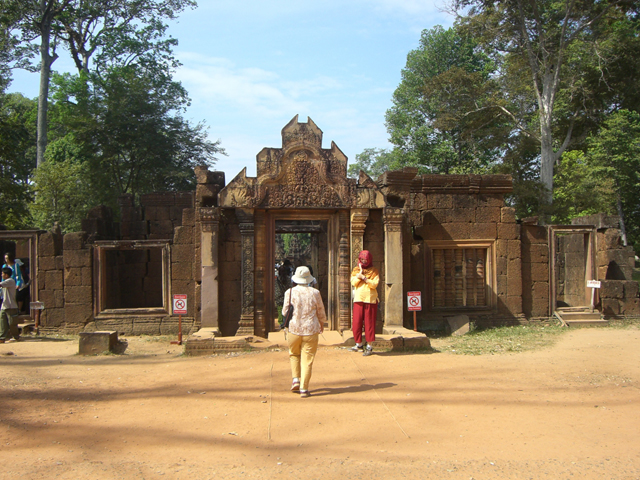 然而女皇宮的建地,遠離吳哥遺跡的核心所在,因此,我們乘著遊覽車一路晃晃蕩蕩,直到近午才見著他的風貌。