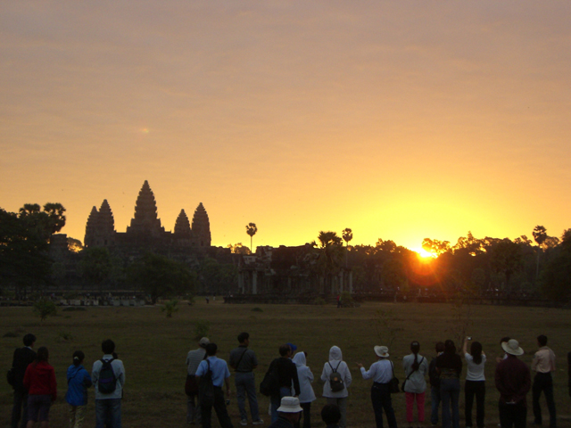 彷彿無聲的雷閃,吳哥旭日在我們心中灼下深刻的撼動後,迅速飛昇雲後。只褪落金穗,在天空緩緩擺弄,織成一幅光紗,覆籠吳哥。