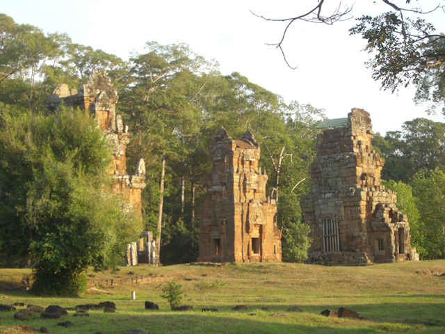 巴肯山其實只是個小丘,但已算是吳哥區域的制高點。從山腳一條破碎的階梯筆直通上山頂,雖說山巔不高,但看著陡峭的好漢波也是讓人腿發軟。況且經過歲月的摧殘,土階已不成階形,一恍神或許便會滾落山底。