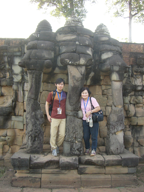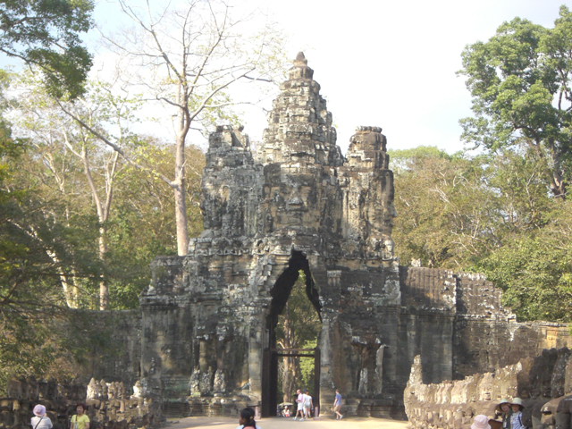 下午的行程是重頭戲之一的大吳哥城,它是皇城規模,佔地非常廣大。裡面建有各式廟宇殿堂,是當年王朝的中樞地帶。除了朝東一面多了個勝利門外,其餘方位各有一座宏偉的塔樓城門,而保存最完整的便是南城門。