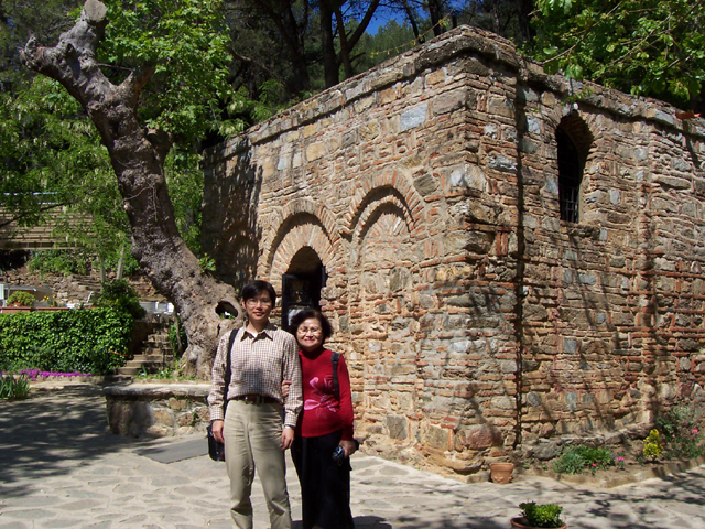 下午,是在土耳其最後的景點—艾菲索斯古城。在去古城前,我們先到了聖母瑪麗亞之家,據說這是聖母最後居住的屋舍。更傳奇的是,當初是一位婦人在夢中見到這個地方,她堅稱找到聖母之前所在,但是沒有人相信。但在這個處所被發現後,經學者考據,似乎真是聖母最後的房舍遺址。重新復原起的簡樸小屋,靜謐無爭地棲在清幽樹林間,陽光輕灑,微風拂葉,確是一處安詳地。