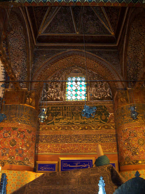 當地的一座清真寺裡,有著梅烏拉那的陵寢,同時也將一部份擴建成博物館,展示可蘭經、地毯、樂器等等。比較特別的是可蘭經,有幾本迷你到要用放大鏡才能看清經文,但不論大小,都製作得相當華麗精緻,內文書法與斑斕框邊結合在一起就像本圖畫書似,讓人愛不釋手。