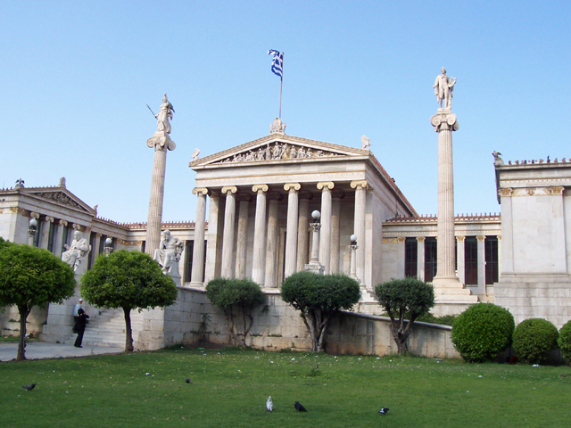 其他市區景點還有雅典科學院、圖書館、大學所組成的希臘式小廣場花園,尤其是科學院,門前矗立著柏拉圖與亞里斯多德的沉思像(還是蘇格拉底?),屋頂則為阿波羅及雅典娜的雕塑,襯上門前的雕刻彩繪,相當亮眼。