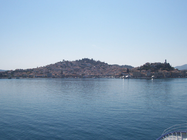 波羅斯島上,我們攀到小丘頂的鐘樓俯瞰島上景緻,港灣區是密密麻麻的紅瓦住宅商家,稍遠處便是綠毯掩蓋的起伏山巒。希德拉島則只待了二十分鐘,繞完立於島緣的砲台,便隨意看看商店內販賣的藝術品,大多數都是彩繪金飾希臘神話的瓶盤,本想帶些回去作為紀念,但轉念思索,經過旅途舟車,回家攤開大概只剩碎片了,只好忍痛作罷。愛琴娜島是唯一待得比較久的島,卻碰上他們的午休時間。希臘人有些是誇張到整個下午都不做生意的,由於沒有參加自費到另一處古神殿遺跡的短時旅程,所以只好在街巷間無目的漫遊,看看他們的建築,感受島上那種慵懶的氣氛。