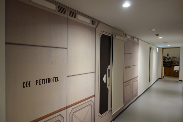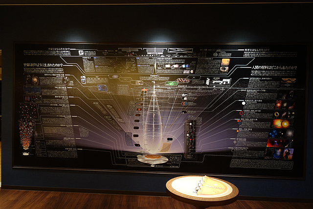 回到「星文化館」,check in時來去匆匆,此刻才有心情慢慢探逛。入口的商品區挺多樣,除了以星體星座為主題的小玩意,也有些關於飛機、太空梭的模型。比較妙的是「星野製茶園」的魔爪居然伸進了這裡,想起外甥女愛喝茶,就多買了方便沖泡的抹茶焙茶拿鐵粉。再循弧狀廊道往前,住宿區牆上亦點綴著科技風彩繪,雖然房間內裝簡約,從官網看,是真有一間膠囊式的仿了太空艙,相當有趣。