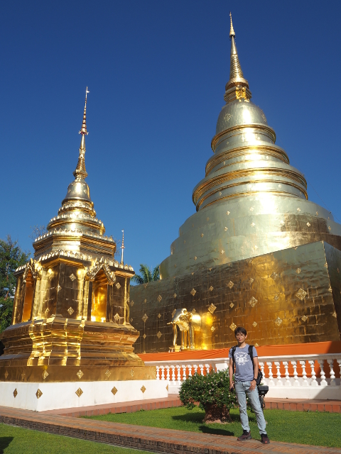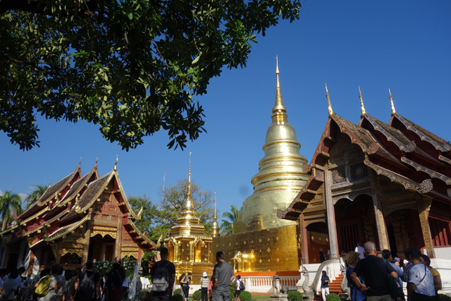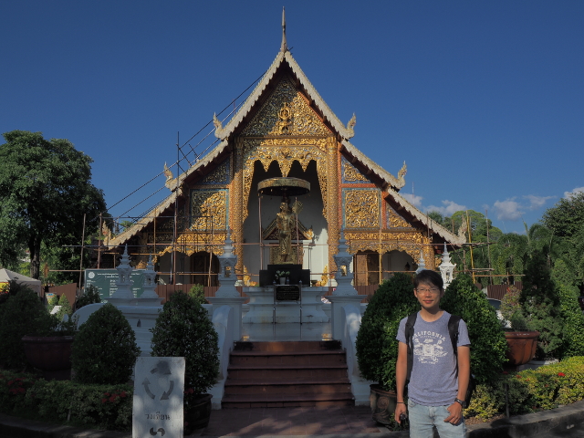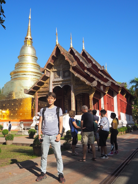 在「清邁」的第五天,重點是比較郊區的「素帖寺」,找不到合適的一日團,只能靠自己,最省事就是灑錢召喚GRAB啦,但算算那距離金額,卻又縮了手,乖乖往平民路線靠攏。網路上說「帕辛寺」(Wat Phra Singh)附近有幾家在攬客,可以殺價包三輪車改裝的「嘟嘟車」,或選空間比較大的「雙條車」,等其他觀光客湊團。「帕辛寺」剛好離我們旅館不遠,且本就是拜訪目標之一,於是清早起床就直接往那走,打算來個一石二鳥。