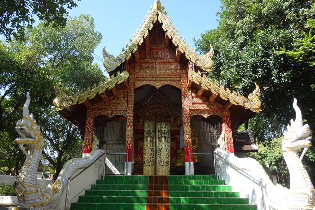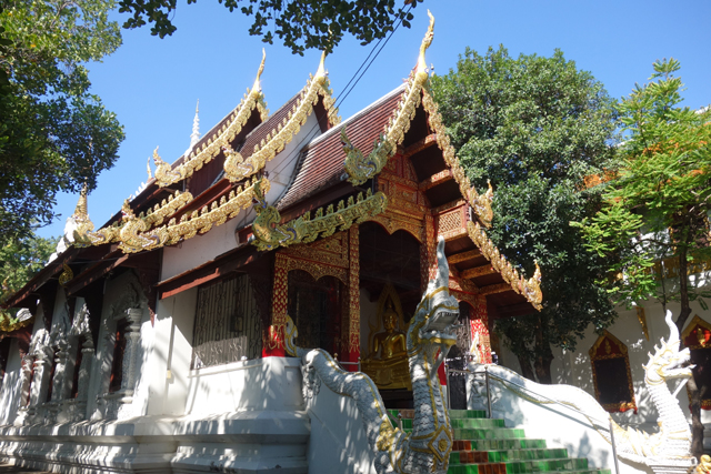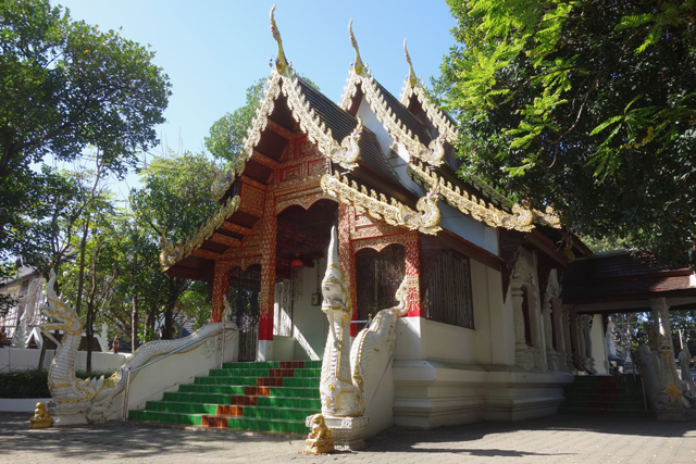在「清邁」的最後一天,由於我訂的班機比旅伴的晚,所以大清早他搭計程車走之後,我還有幾個小時可以溜達。多出來的時間不能浪費,就決定去較沒逛到的古城南區,盡量把那兒的廟宇都看一遍。