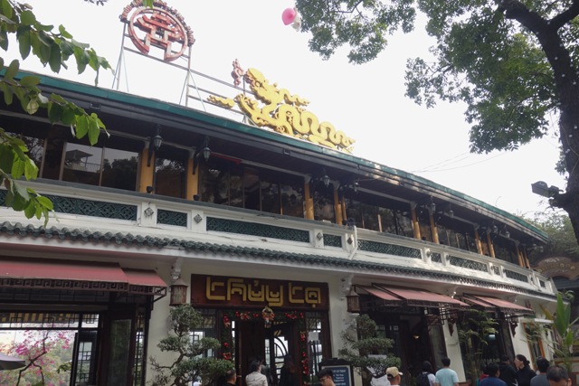 吃飽的我們原路拐回「還劍湖」,湖西岸都被大餐廳佔去了,有著中式裝潢與龍形看板,如果是跟旅遊團來,猜想會在這兒一邊用餐一邊賞望湖景吧。但自助行也沒啥不好,至少第一道的越南麵包便給了極佳印象,且後續還排了好幾間特色美食呢。