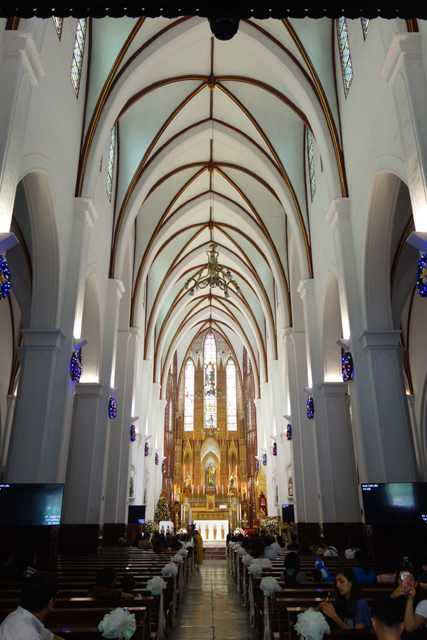 也的確,它經歷了「越南民主共和國」,也就是一般認知的「北越」統治年代,神父被逮捕,教堂被查封,荒遺了好一陣,直到統一後的「越南社會主義共和國」才漸漸復興。不過那一身的髒污倒不完全因著戰火硝煙,空氣汙染似乎才是主因。