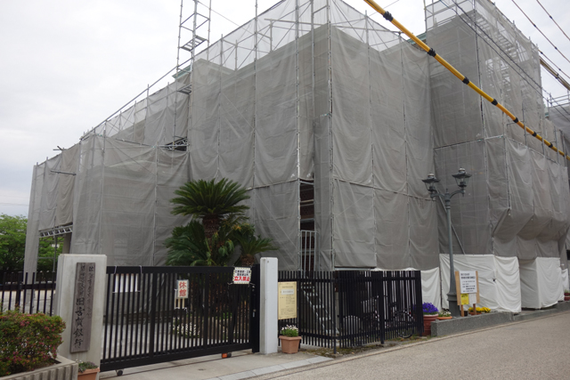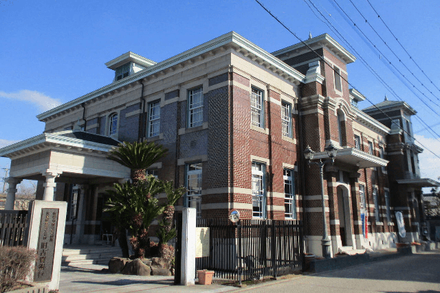 應該是產權問題,由街口圖板來看,並非所有屋舍都是歷史民俗館的成員,政府只能覷著時機陸陸續續來收購,為首的當屬「舊古賀銀行」。身為明治大正年間九州的五大銀行之一,圖片上的它如歐式洋房一般以赭紅拼磚打底,灰白飾帶橫劃,微挑樓塔與前探門廊都彰顯其當時風華,怎料隨路望去也沒見什麼氣勢建築,仔細一辨才發現那棟被鷹架灰網包覆起來的就是它啊。除此之外,「休館中」的告示也斷絕照常營業的僥倖,所以不僅無法見識內部裝潢,什麼在挑高的環廊大廳走逛、於改裝後的咖啡廳感受往氛圍通通無緣。