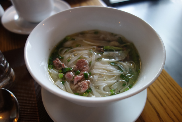 出發之前,先去飯店餐廳報到,一如初來時感受到的殷切,這家提供的早餐也用心,除了菜色多樣的自助餐,還有單點菜單,結果就不禁把歐姆蛋、生春捲、牛肉河粉都點了一輪。河粉也算越南標誌性美食了,而這趟的初相遇,光是湯頭就相當美味,只是一堆麵條外加我已夾上桌的菜,便讓我撐著肚子走進旅行社派來接的車。