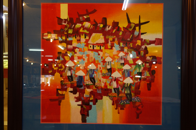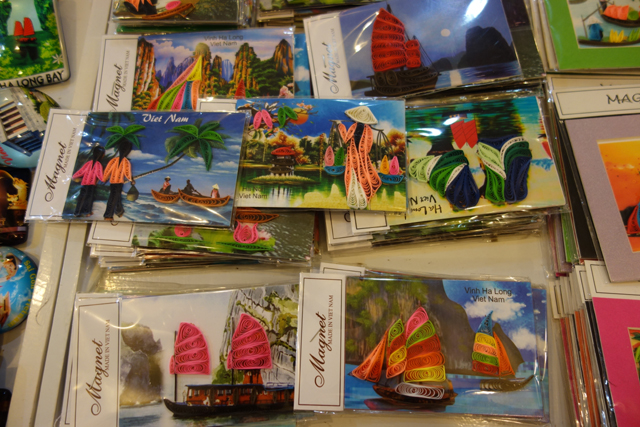 來旅館接我們的導遊是個帥哥,途中很熱情地不斷作先行講解,偶爾穿插笑點讓車程不會過於乏味,但該小撈一筆的還是得賺,假藉活動筋骨兼解放的購物站又出現了。這站以刺繡作主打,能見許多少女將手中針線熟練翻飛,我仔細盯瞧了幾幅作品,當中的光澤漸層還滿出色。可惜這好的開始到了港口就頓時扣了分,因為帥哥導遊手一圈一指就把我們分派給別組,而這組導遊不僅長相樸實外加臉臭,還相當懶惰,整趟除了叫大家吃飯或去哪集合,其他時間都縮在椅子上滑手機……