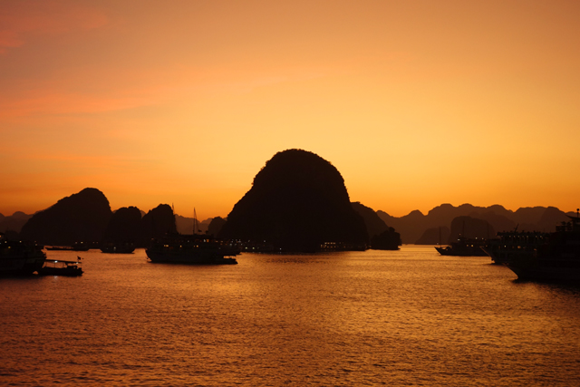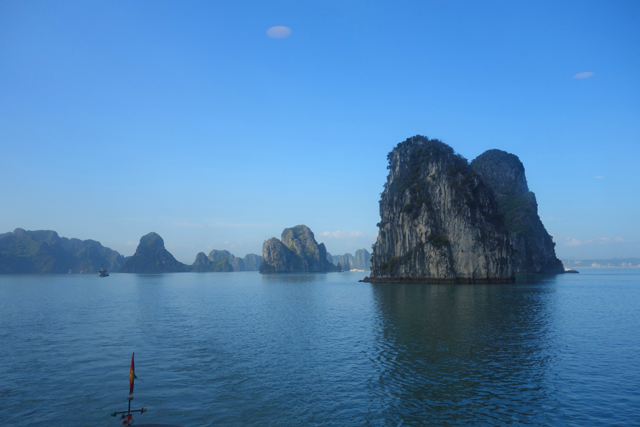 月隱日明,窗外陽光意味著天晴,曾有人為了「下龍灣」遠道來此,卻撞入雨幕,也令我在選班機日期時像下注般猶豫許久,幸好氣候統計資料還算準,有燒香也真有保庇,得以開開心心準備出發。