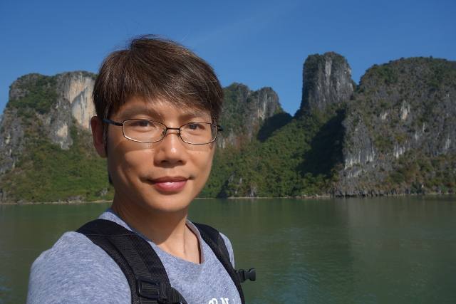 然只這麼拍了一圈照,回到餐廳旅伴就不知哪根筋不對,暴怒說我亂跑,聽起來似乎是其他人領完房間鑰匙全走了,就他在那乾等。這很莫名奇妙啊,船就一丁點大,又不是鐵達尼號,我不在主艙肯定在甲板,不會上來找喔,亂罵什麼,頓時我也賭氣不想跟他說話,再次避回船頂,清清靜靜欣賞這被收為世界遺產的風景。缺點就是,沒人幫我拍照了,得辛苦伸長手自拍,要失敗好幾張才勉強對到我想入鏡的風景……