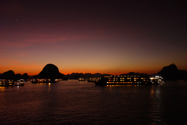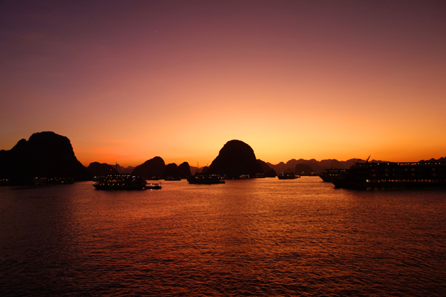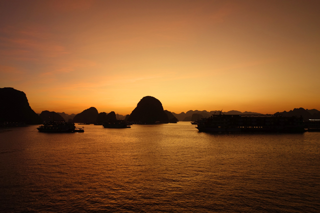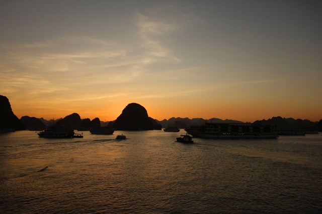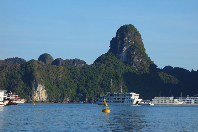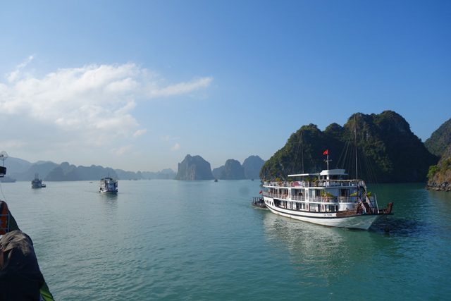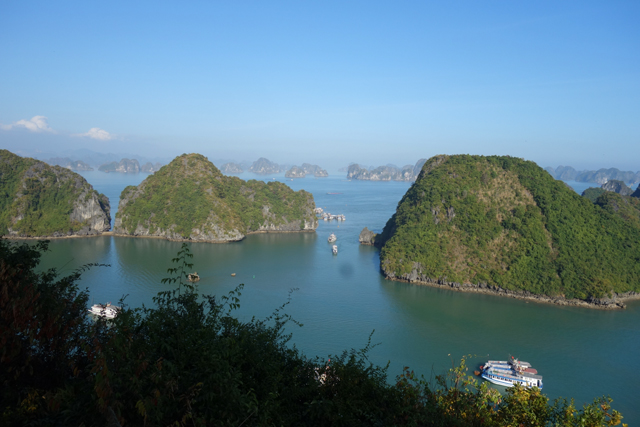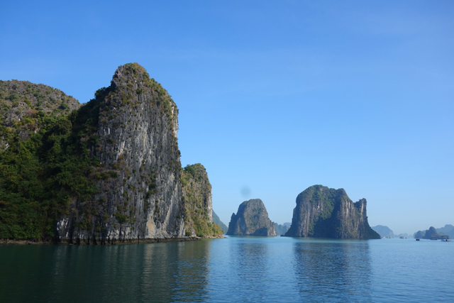 不禁也追憶著同年的「九州」之旅,當時去了鄰近「長崎」的「九十九島」,坐著偽海盜船於島鏈中穿繞,又上了「展海峰」,在高台俯瞰。很難將兩者分出勝負,若真要比的話,「九十九島」有著不少秀麗島形,彷彿海神的巧手花藝,亦有岩塊形似狛犬,將航線化為海之參道。「下龍灣」的則偏大器,渾厚、巨碩,與大海齊同織連一幅浩瀚。
