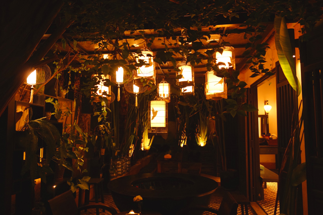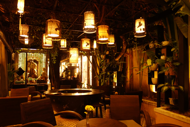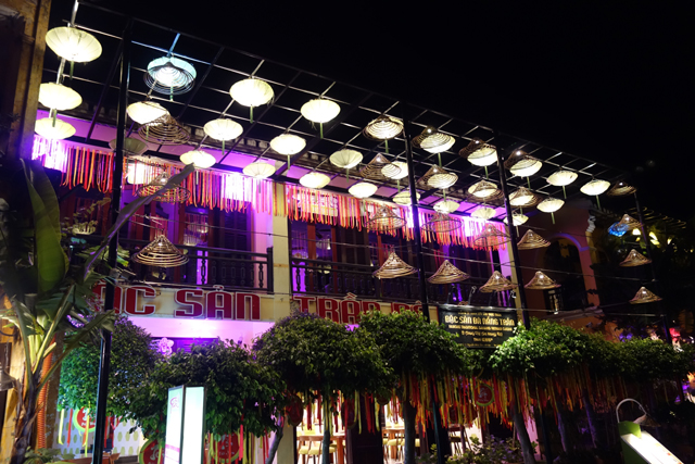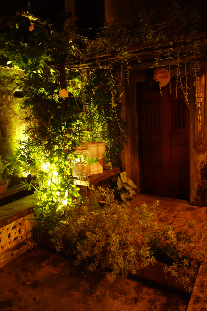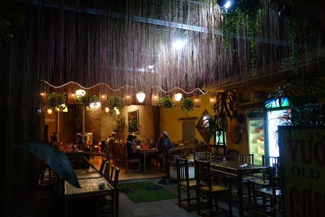 其實若要把麵包當晚餐也是可以,但由於「會安」尚有許多特色美食,便決定拚一下,從網路的推薦中,挑了一家「Old Garden Restaurant」。它藏在連通大街的小巷裡,走庭園風,一進去便見氣根鬚簾自棚架掛垂,搭配由竹編燈籠泛漾的婉約光暈,有著讓人紓懷的鄉居情趣。怪的是客人沒幾個,讓我心有點抖,想該不會是雷店。只能跟自己說小巷本就不會有太多觀光客,且這安安靜靜的氣氛挺好。