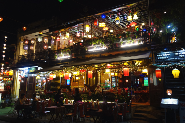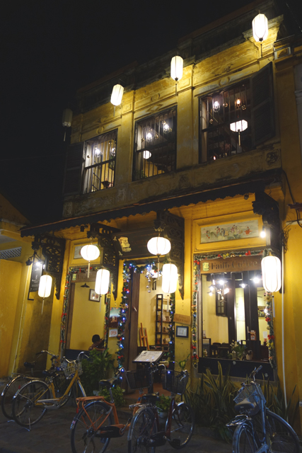 市面上旅遊團來「會安」多是快閃,吃個午餐,逛幾棟老建築,放風shopping,在天色暗前就收隊開往別的城市。但看了一些遊記,總覺得入夜相對寧靜的氛圍才是它該呈現的風貌,就決定要住上一晚。而在解決晚餐之前,有道前菜得先去嚐嚐,就是法國麵包,它在「河內」給了我極佳印象,這兒也有兩家在爭奪頭牌,有些觀光客會特地都去作驗證,我們比較懶,想了想就把遠的那間刪去,儘管如此,要到另一家仍舊得走好長一段路。