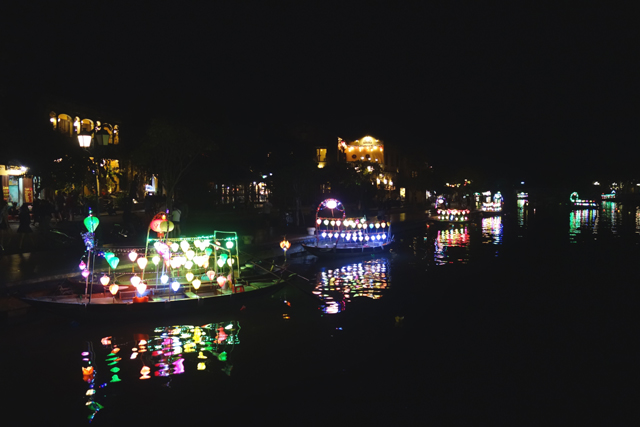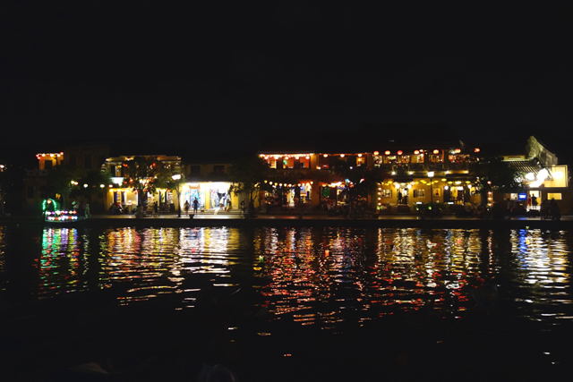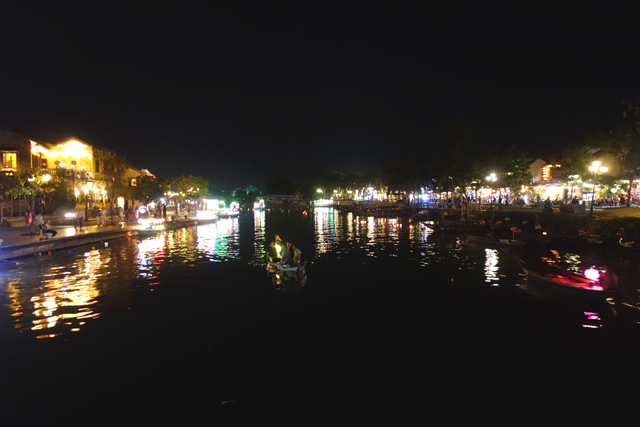 不免也在此盯望著「秋盆河」,遠離了餐廳夜市,岸邊顯得無比靜謐,時光彷彿停止了流動,只有墨川的光斑微微爍眨著,與風拂漣漪相應和。而河畔的燈火串延無盡,像是它仍未被「峴港」取代的時年,縱使夜已深邃,仍要聚擁著,暢飲繁華。