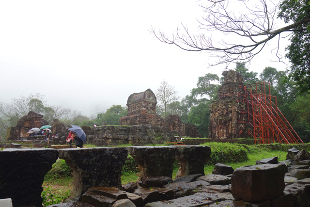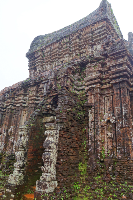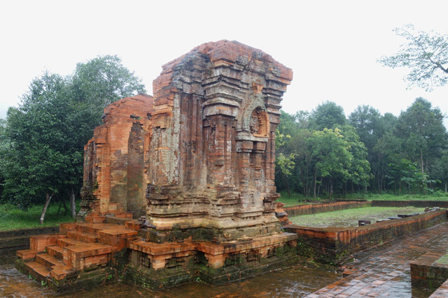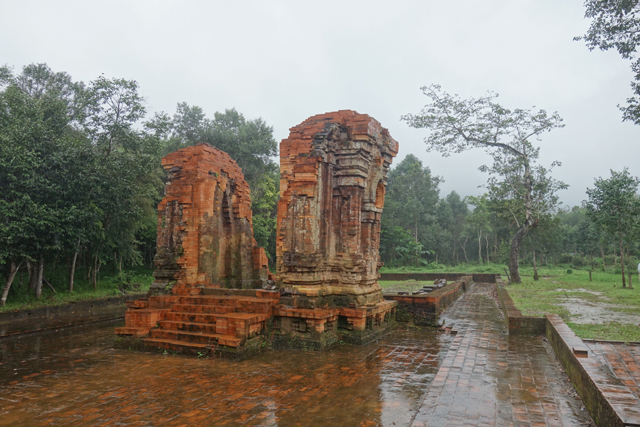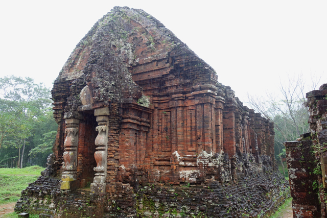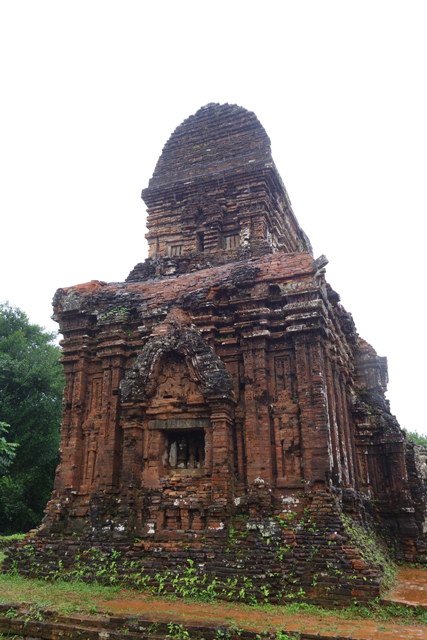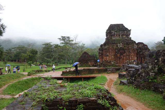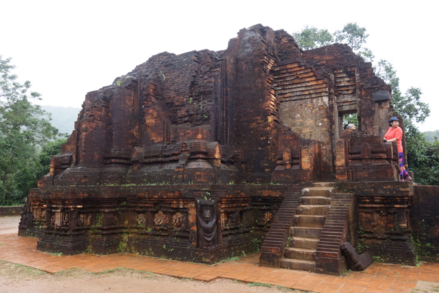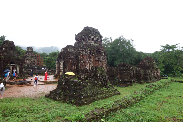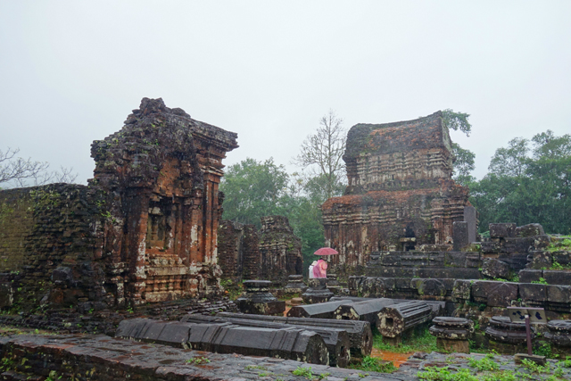 越南在千年前曾有個古國「占婆」(Champa),它趁東漢衰弱之際起兵獨立,盤據著沿海地帶,並與西邊大國「吳哥」拉鋸相爭。雖被北方後來崛起的「李朝」、「後黎」漁翁得利,還是在「會安」這區留下了印記,也就是它曾經的都城「僧伽補羅」(Simhapura)。不過王都盛年的建築幾乎都毀於戰禍了,倒是鄰近的王家祭祀聖地「美山」(My Son)運氣好,遺下了一整區的寺廟建築殘著當年繁華。