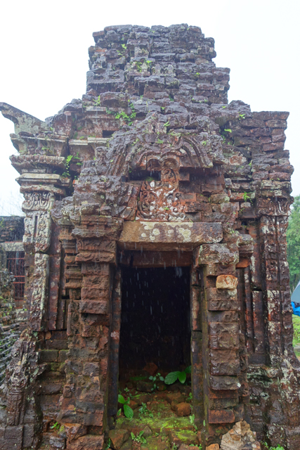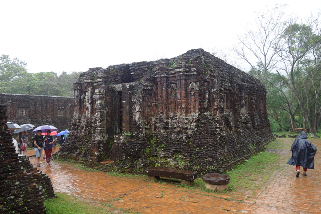 由於是古寺又為世界文化遺產的一員,我在查到相關資料時就很期待,哪知在「會安」還天晴日朗,過了一夜居然下起大雨,很令人黯然。但也不能說過於意外,當初調查氣候便知冬季北越較乾、中越較濕,只是為了顧全「下龍灣」,想賭個一把,幸好看預報這週也僅有今早會下雨,就當是旅程必要的獻祭吧。