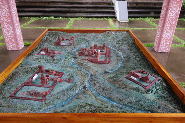 可能是不同年代都有自己的經營區塊,由地圖上看,遺跡一簇一簇的,散佈在這廣闊的山間地帶。它們被標上了英文代號,不曉得是否為考古發現的時序,而導遊並沒照著上頭建議的順時針環遊方向,反倒逆時針直接帶去最裡的BCD區,說剩下的可以自己逛,不會迷路,注意集合時間就行,有種偷懶的意味。但會把BCD區當成講解重點也有其理,畢竟遠遠就能望見寺塔如峰,於綠地參差聳立。