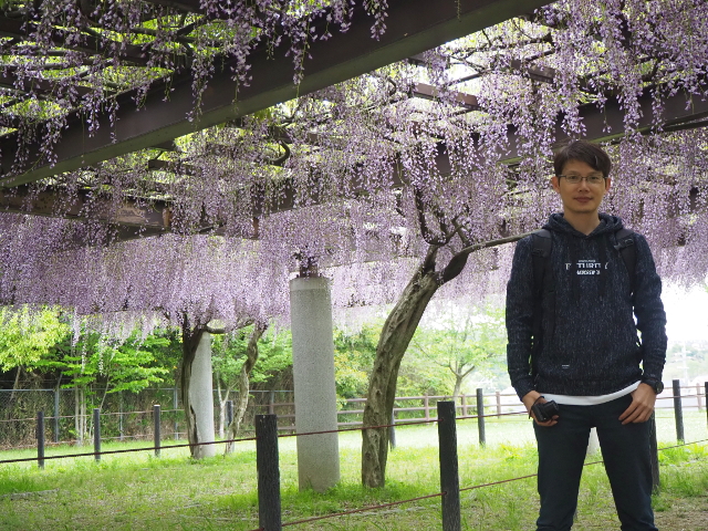 那同樣備受台灣人推崇的「足利花卉公園」應入得了他們法眼吧,我不禁從記憶庫抓了幾幅縮影,裏頭有著令人訝目的翩然藤簾,花色聚密鮮亮。不過照片畢竟侷限,亦可用拍攝技術美化,由官網地圖來看,它比較像植物園,藤花僅為部分亮點,且品種是切分開來,各成一隅風景。似乎會少了些色彩交錯的變幻,那廣域的織連、散漾的氛圍呢?我不禁盯著眼前斑紫,用想像去推染。