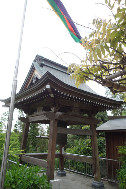 一路走來覺得人潮已經誇張,沒想到寺裡人更多,可能在鬧區,交通方便又免費,當地民眾都過來吃吃晃晃。愣了幾秒的我們先拐去近處的小鐘樓,它從山坡外探,剛好讓我補幾張山門的確切輪廓,旁邊還有個小閣「閻魔殿」,名稱令人不由得多瞄幾眼。我是知道日本崇敬地藏菩薩,原來也有一整套關於閻羅王的傳說喔?更妙的是,堂前垂掛的並非鈴索,而是一串大型念珠,感覺別有他用。