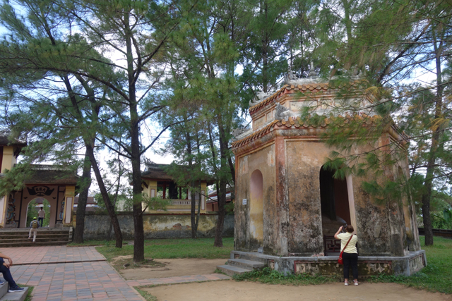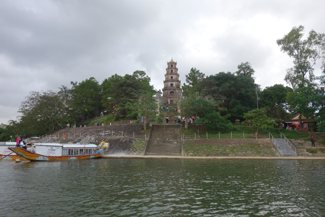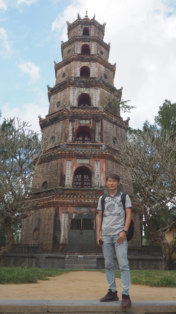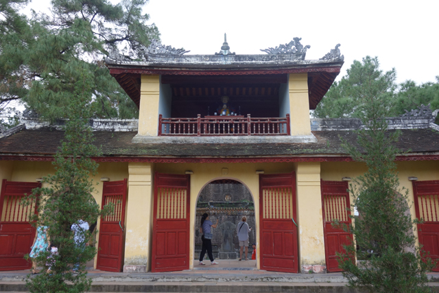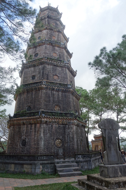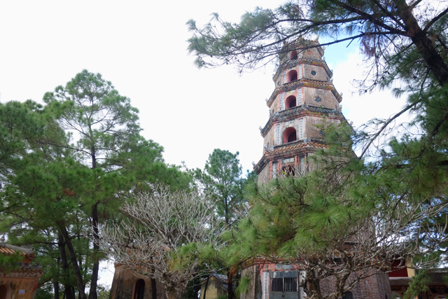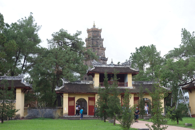 來「順化」除了看皇城與皇陵,多半也會造訪同被收為世界文化遺產的「靈姥寺」,它位於江邊,遠遠就可看到一座古樸高塔醒目屹立。網路文章常只貼那座塔的照片,我一度以為寺體已傾毀於四百年的漫漫歲月,僅剩下塔,結果殿區根本就在塔後。