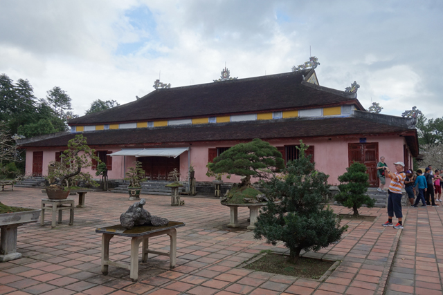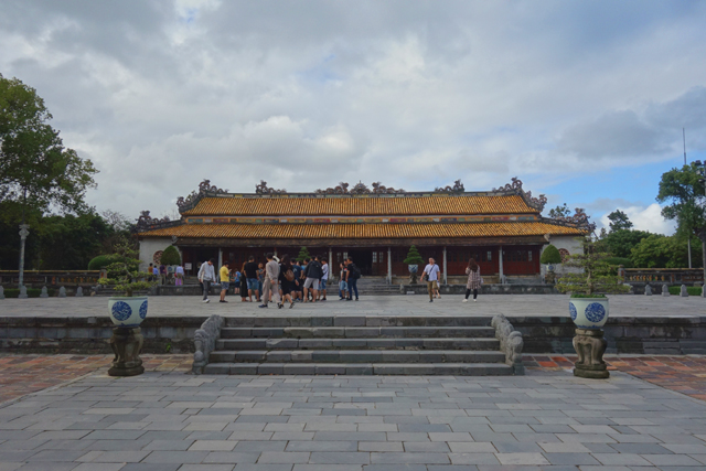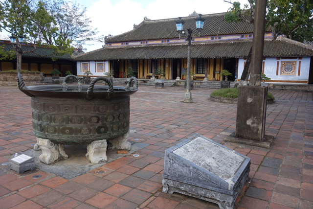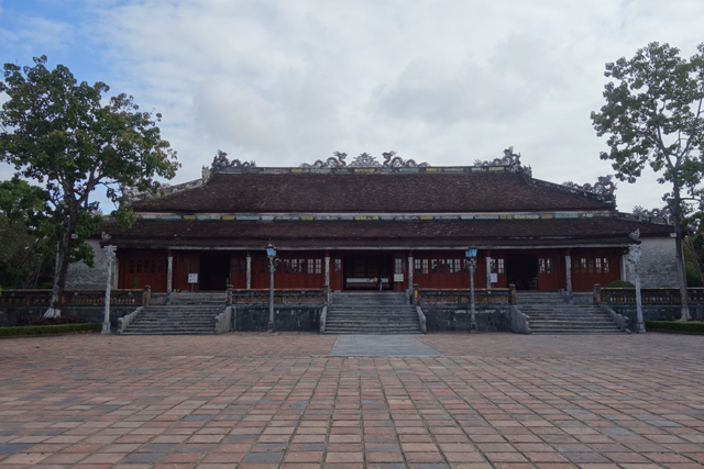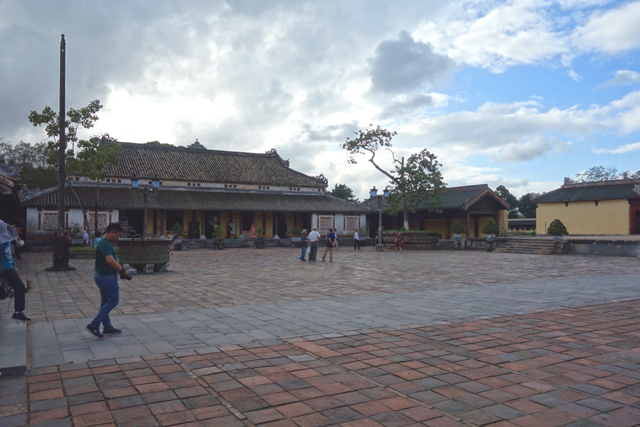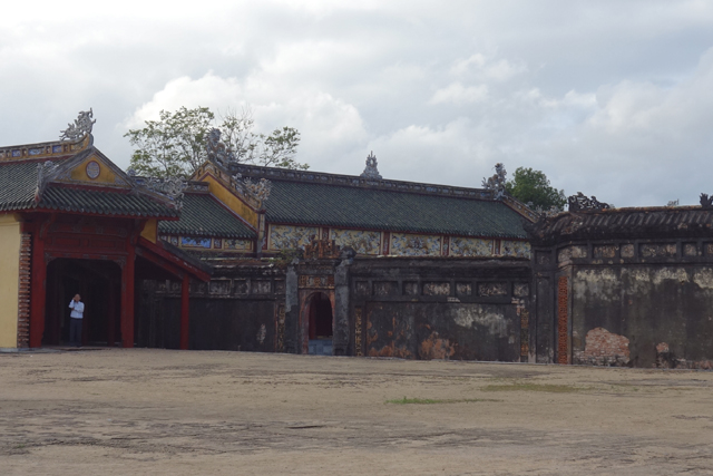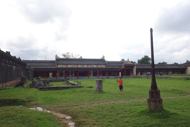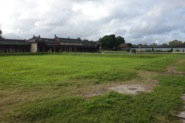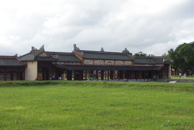 可惜真實的景貌只能自我懷想了,1968年越共在春節突襲了美軍駐紮的「順化」,起初為了保護珍貴文化遺產,美軍勉力不使用砲擊炸彈,隨著戰況轉劣,也顧不得這些了,於是當戰役結束,皇城滿目瘡痍,「太和殿」這類還能修葺的算幸運,大部分的內宮都成了廢墟。從「太和殿」背側走出,原本前方該有「大宮門」與長牆封圍,目前變得大幅開敞,正面處理政事的「勤政殿」沒了…只留下兩旁內閣辦公用的「左廡右廡」。