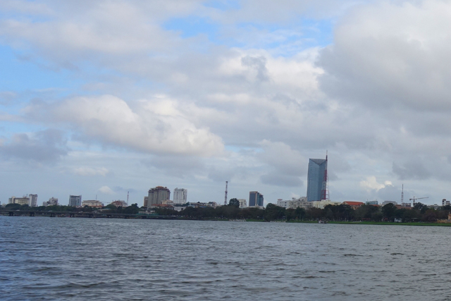 從文案的敘述,循著「香江」應是能見到些不錯景致,然也不知是被過於美化,或麗景不在此,由於河段開闊,又非航穿山巒,岸邊現顯的就是微微曲折的房宅稜線,天空也灰灰茫茫,只能當記錄般,偶爾按個一兩下快門。如此放空了一陣,終於江畔竄出了散揚古意的疊簷建物,意味著皇城即將與我們相會。