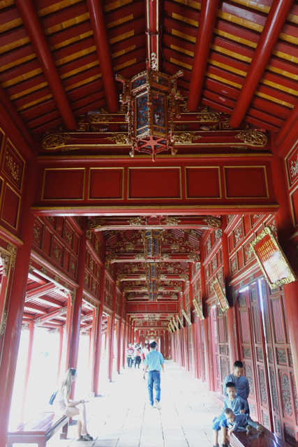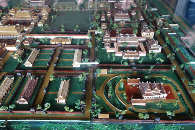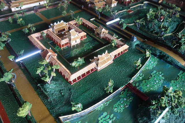在「李朝」或是「後黎」,政治重心都在北邊的「河內」,「順化」長期是「占婆」的屬地,要到「阮主」崛起,才以「富春」之名綻出光芒,據說在那時期,宮閣亭軒便已砌築得廣漫,各具風姿,但具體如何,也很難得知了,沒找到文章介紹現況,估計都已成了荒沙。如今可見的城池擘劃於「阮朝」,是初代皇「嘉隆帝」的手筆,師法著中國,方城高牆層層套環,最外是京城,佈設各樣行政機構,往內為皇城,顧名思義為王家起居議事所在,最核心借名了紫禁城,是私密的帝后嬪妃寢殿。