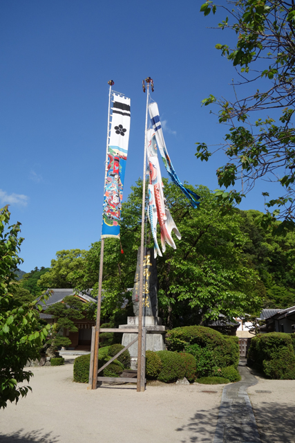 神牛的背後另有座墨門,門前被奉祝「明仁天皇」在位三十年的燈籠架遮掩,照地圖的標註,是「延壽王院」,好奇從旁邊示意性封擋的步道窺看,院落除了鯉魚旗與刻著「五卿遺跡」的石碑,便是蓊鬱林樹,不曉得藏了什麼秘密。事後再查,原來是由「菅原氏」分支出的「西高辻家」宅邸,他們世代奉祀神社,宅邸因此被天皇賜名。至於「五卿」,指的是江戶幕府末期五位尊王攘夷派的公卿,他們為逃避追捕曾藏躲在此,由於名字對我來說相當陌生,不是常在動漫劇作出現的那些,就沒多花時間尋找他們的終局了。