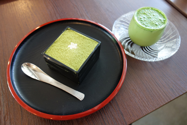 「先吃飯啦。」完全看穿我意圖的旅伴發出抗議,把我拖至樓上。即使我是因為甜點注意到「抹茶屋WaoWao」,它其實是有賣主食的,剛好能順便解決午餐,撇去夾餡的口袋吐司,咖哩飯有三種選擇,歐姆蛋、起司或豬肉,旅伴很明快地選了最前者。至於歸我領域的甜點,附帶冰淇淋的鬆餅在圖片裡相當易懂,其餘以片假名標註的小蛋糕對我便等同外星文,「就蛋糕啊」身為翻譯機的旅伴耍大牌,愛講不講的,最後我只好保守選擇網路推薦的「抹茶提拉米蘇」搭「抹茶拿鐵」。