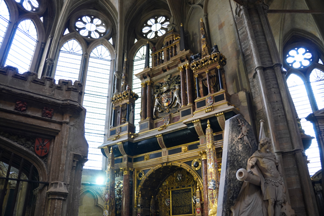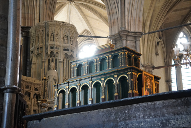 一邊拜訪小堂,一邊也瞥著它們繞圍的這區域,通常主壇都是其核心,於「西敏寺」卻不然,因為後方還有更神聖的「愛德華禮拜堂」。身為創始人,「懺悔者愛德華」的身分自然尊貴,且據說早前開墓時,他身軀依舊完好,被認定是虔心的證明,將其封聖。遺骨能留存至今也是種奇蹟,畢竟在宗教改革的那段紛擾時年,多數聖人塚龕都被無情毀去了。不過尊貴不代表安寧,他總是被各代藏這挪那,甚至一度被加冕典禮的施工戳穿。