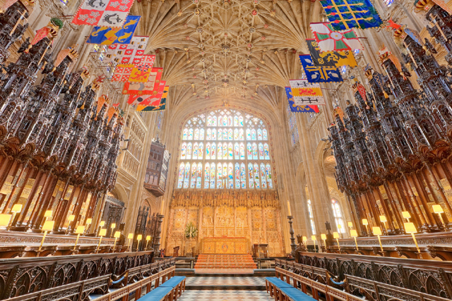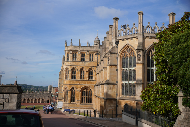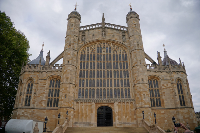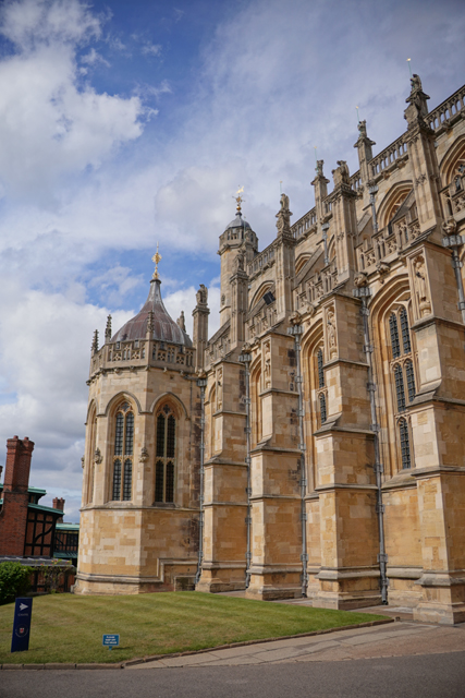 帶著缺憾從賣店走出,「溫莎城堡」除了東側的宮殿,在「圓塔」西側還有棟「聖喬治禮拜堂」等待收集。雖是王家所屬的禮拜堂,其實它已有教堂的規模,還長到擁有兩對翼廊。