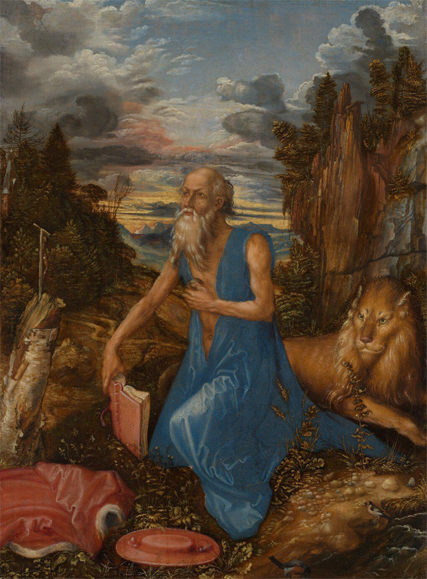 時間點回到在Room15的抉擇,當時的我決定先解決西北角,也就是「北方文藝復興」的演變。這區域包含德國,以「杜勒」為代表,之前我對他的印象只是一幅很帥的自畫像,可惜館內收藏並不多,無助我進一步了解。Room25僅有張小小的《聖耶柔米》,是乾瘦的他在翻譯聖經時,因感慨而拿石捶胸,周邊能見獅子跟細膩勾勒的風景。
