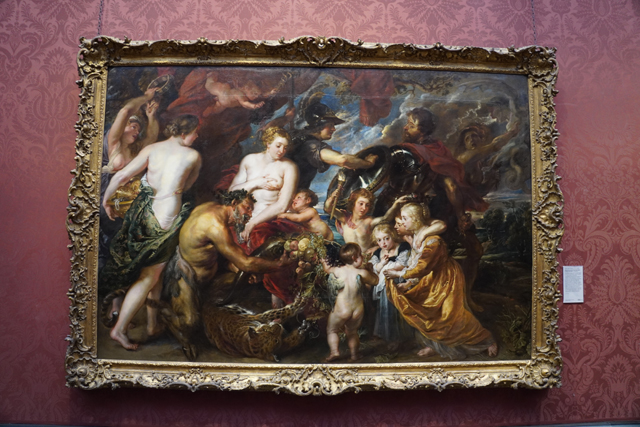 在這之後,便是「巴洛克畫派」的萌芽了,它造就了「荷蘭黃金時代」,鄰近的「法蘭德斯」也不遑多讓,居首的「魯本斯」就在此區霸佔了中央廳Room18。不由得將視線停在最大幅的《Minerva protects Pax from Mars》,它將「和平」畫成正在哺育「財富」的母親,後頭有密涅瓦驅趕來鬧的戰神,渦漩般的佈局有著流動感,輕易便牽帶了視線。