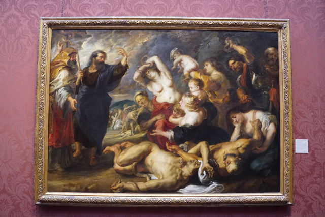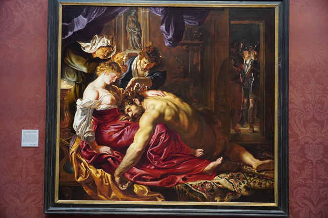除了神話,自然也有聖經章節的著墨,像《The Brazen Serpent》便描繪了上帝降下蛇災,懲罰信仰不貞的人,能見群眾被纏噬的恐慌。作為對比的是當中仰望摩西及其身後銅蛇柱的母子,因虔信而顯得聖潔,據說是偷渡了「魯本斯」家人。《參孫和大利拉》則勾勒著背叛的那一刻,門外士兵蓄勢待發,「大利拉」盯著一縷縷被剪斷的頭髮顯得心事重重。撫觸熟睡「參孫」的手似有不捨,畢竟片刻之後將是訣別。