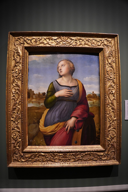 另兩幅顯現短短幾年他飛速的進化,一趟佛羅倫斯之旅令他被「達文西」跟「米開朗基羅」深深震撼,拋棄了從原本師父所學。《Saint Catherine of Alexandria》便藏有兩位大師的影子,倚著車輪刑具的「聖凱瑟琳」半扭身仰望天空,表情有著虔信與望見異象的出神。