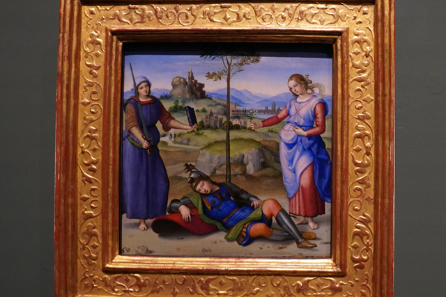 Room26鄰近介紹的其實是阿爾卑斯山以北的「北方文藝復興」,這間主角為「Antonello da Messina, Gerard David」,但很自然我的目光都落在「拉斐爾」的四幅。《The Procession to Calvary》和《The Dream of a Knight》顯然是早期的作品,人物姿態可說仍有點僵。前者為耶穌扛十字架的步途,後者取材自「第二次布匿戰爭」,能見年輕的「西庇阿」夢到美德與快樂化形的女子。