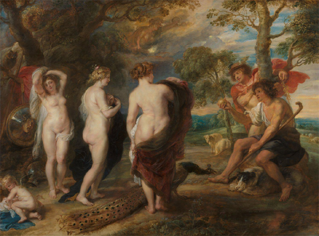 不同時期的《帕里斯的評判》則很值得玩味,同樣的赫拉、雅典娜、維納斯爭奪最美女神,構圖跟筆觸卻有極大差異。年少所繪較正經八百,三十年後的顯然寫意得多,還故意挑戰自己,將女神們以側背身姿來表現,並在周邊添入梅杜莎和復仇女神,暗示「特洛伊之戰」的即將到來。