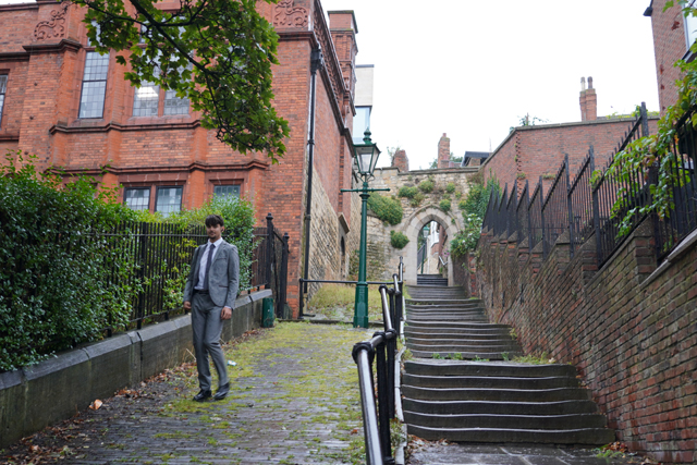 「林肯」沒什麼過於新式的大樓,彷彿時光仍停在舊時,沿街都是磚石疊砌的典雅小屋,山牆或斜切或流曲。當經過「林肯工學院」以拱窗列飾的赭紅樓群,我找到了拐往坡上的階路。一面爬,一面隨意瞥看,有位學生從高處走下,西裝式制服令高挑身材更顯修長,小小蓄鬍讓斯文氣質多了點粗獷。可能是不想擋到我的取景吧,他改走旁邊的斜坡,卻在與我對眼後滑了一下,雖沒摔跌,還是令他露出丟臉的笑容。那…如果倒楣滾得很慘呢?會不會是小說有趣的開頭?我腦內世界開始狂想。