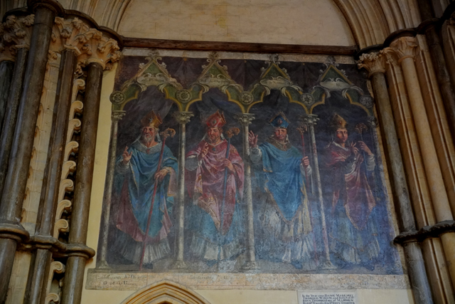 出來後進入東北翼廊,其右牆有巨大彩繪勾勒了四位名諱已模糊的主教,導引般帶我直進唱詩班席。