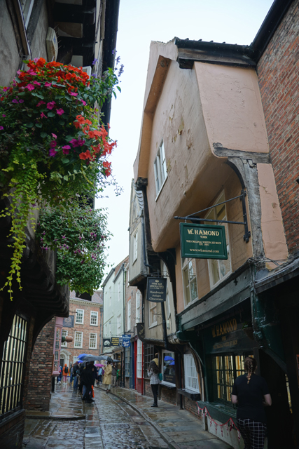 市區最知名的是「肉舖街」(The Shambles),雖然早年都在掛肉滴血,畫面頗噁,現今反因層層往狹巷出探的遮晾結構成為景點,據說是哈利波特「斜角巷」的靈感。但由於團客散客都會來打卡,想感受那樣的線條之美,沒大清早來根本不可能。