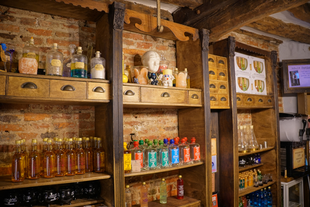 我比對地圖,折拐而至,巷裡擠滿了遊客,遮蔽視線的花傘處處,有間「York Ghost Merchants」還排了長龍。好奇探看,似乎就是些不同石理紋彩的幽靈小擺飾,不懂為何生意如此好。另間熱門的號稱是魔藥店,裏頭櫥櫃擺滿五顏六色的瓶瓶罐罐,還能自己搭配當飲料喝,我好奇進去,想如果有試喝推銷,又的確口味新奇就買了,怎料完全被當空氣。
