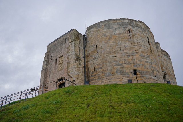 我繞著它環走,其樣貌滿獨特,為四瓣形狀,據說更易於防守,且原本丘下又引了川水。這使堡區成為十三世紀與蘇格蘭對戰的基地,王室頻繁到來,讓「約克」成了跟倫敦同等重要的行政中心。然風水輪流轉,當戰爭結束,它就逐漸荒廢,淪為監獄和處刑場,管理權也交給「Clifford」家族,即現今塔名的由來。