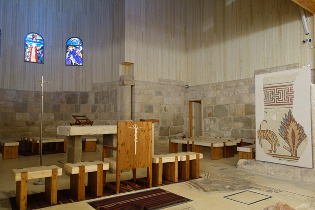 與蛇杖相望的,是教堂的門面,但不知是資金問題或刻意為之,不僅雕琢闕如,方門圓窗也簡單切削,僅有窗花細膩纏勾,隱著唯一的輝華。即便有些失望,當走進堂門精神便振奮起來,並非是裡頭有著反差式的華麗妝點,而是它就像間考古博物館,兩旁殘柱縱劃,側廳全是千年前的馬賽克。